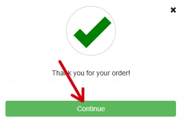 After placing the order, make sure to click the CONTINUE button as shown below to access your order.